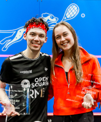 Belgium's Tinne Gilis and France's Victor Crouin won the Squash On Fire Open silverware in…